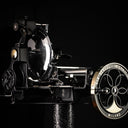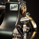 • Special body structure in aluminium alloy, painted black with cast iron effect, chromed steel and gold plated details.