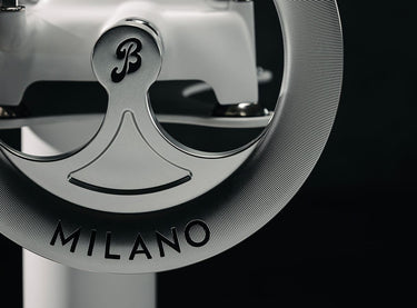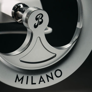 - The Berkel Flywheel, redesigned in a minimalist version that retains the technical attributes of a square profile, is internally balanced to block rotation in any position