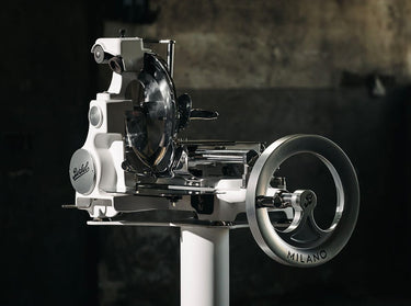 - The slicer comes with its own stand to complete the style of this version of the flywheel.