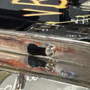 Afwerkingen: Glanzend staal met een hefboommechanisme voor het openen van de mesbeschermring.