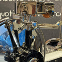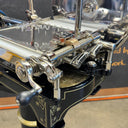 Veiligheid is van het grootste belang. De machine is uitgerust met een volledig verchroomd aluminium mesbeschermingsring en een handmatig hefboomopeningssysteem onder de toren, wat zorgt voor maximale veiligheid. De ergonomische bedieningselementen van zwart geanodiseerd aluminium zijn comfortabel geplaatst om de grip te maximaliseren en de inspanning voor de gebruiker te minimaliseren.