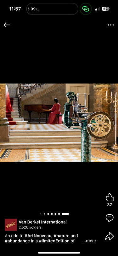 Conçu avec l'élégance de l'Art Nouveau, le Volano B114 témoigne d'une attention méticuleuse aux détails. Ses lignes douces et ses motifs floraux reflètent la grâce de la nature tout en s'intégrant à la précision mécanique reconnue de Berkel. Le cadre, fabriqué dans un alliage d'aluminium spécial, est rehaussé d'une finition verte revisitée avec des touches crème et des détails chromés. Accompagné d'un sabre saisissant, cet emblème artistique témoigne de la synergie entre Berkel et ML Engraving, dont le logo est gravé en évidence sur la colonne du support. L'édition limitée du Slicer Volano B114 et du Sabre est plus que fonctionnelle ; elle célèbre le design, transformant n'importe quelle cuisine ou salle à manger en une pièce d'élégance et d'histoire. Cette édition reflète le style emblématique d'Alphonse Mucha, alliant passé et présent pour créer une pièce maîtresse saisissante. Soigneusement conçu pour les amateurs d'esthétique et de performance, il symbolise l'opulence et le raffinement, idéal pour les amateurs d'art comme pour les professionnels de la cuisine. Adoptez un mélange d'héritage et de luxe avec l'édition limitée exclusive de Berkel.